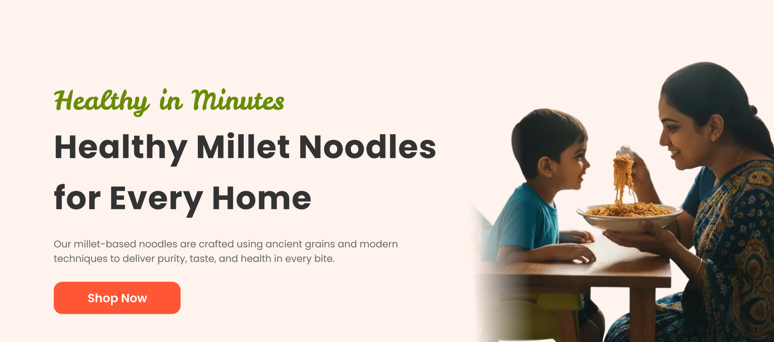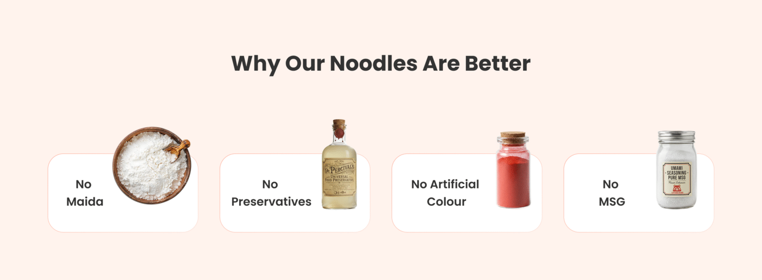 Millet noodles are whole-grain instant noodles made using nutrient-dense millets instead of refined maida. They are natural, gluten-free, and healthier, offering better digestion, low GI, and essential minerals. These noodles are ideal for families looking for healthy alternative noodles and natural millet-based food products.